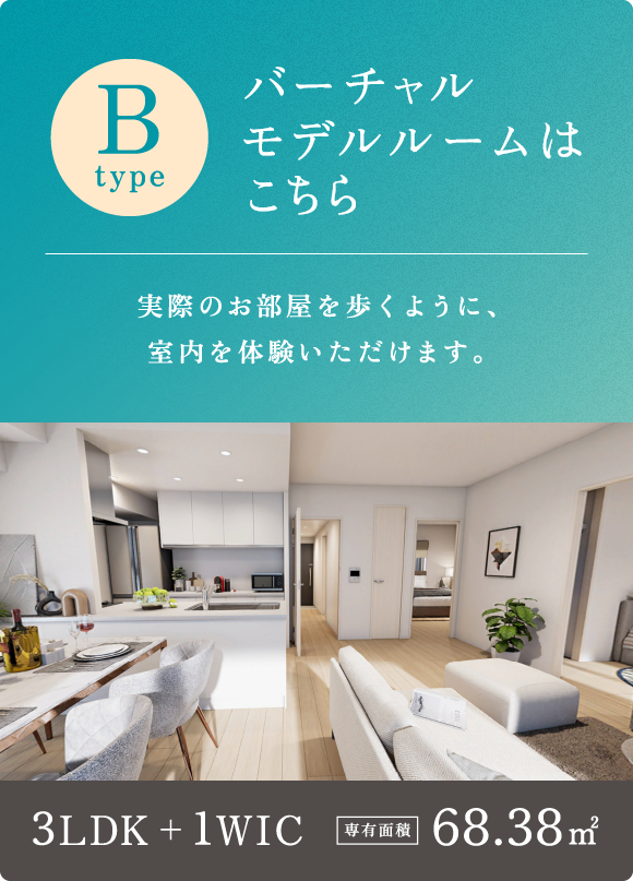 外気の影響を受けにくく冷暖房効率の良い中部屋。3つの洋室を備え家族一人ひとりの空間を確保しながらも、掃除等の生活管理がしやすい広さに設計されています。エレベーターから最も近く、マンション内の移動がスムーズにできます。