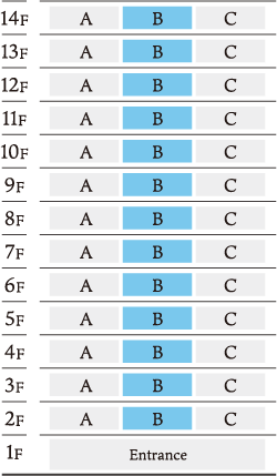 ・11F〜14F:FL+1200−1300×750(PF付)